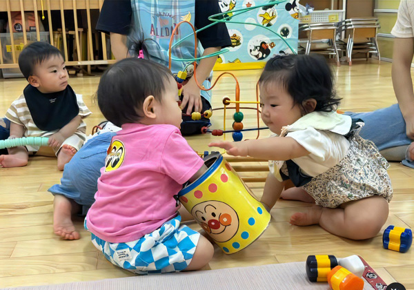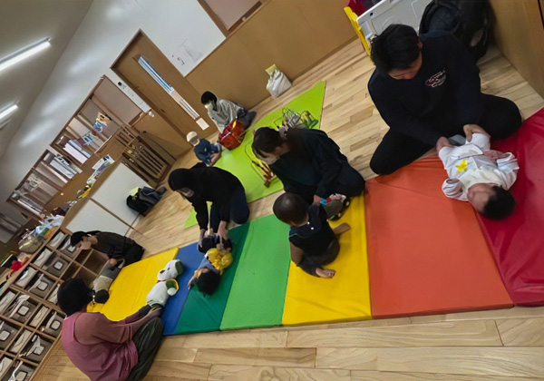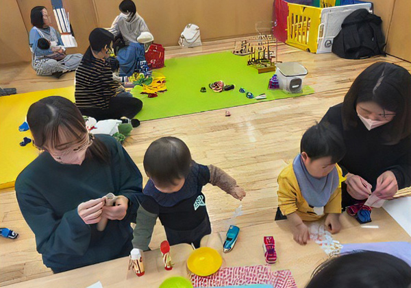 地域の子育て中のご家族のみなさまと、手遊びや運動遊びを通して交流を深めます。子育て情報などいろいろとお話ができますので、お気軽に遊びに来てください。