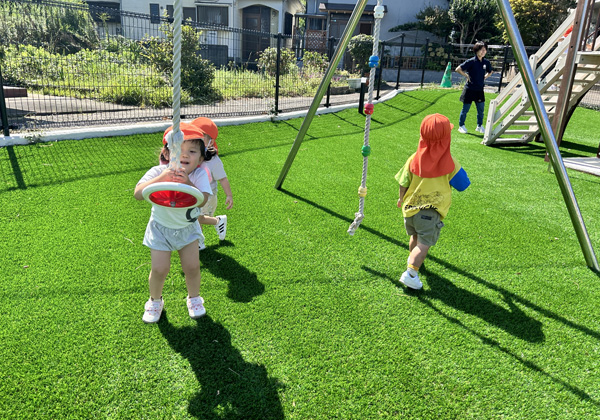 遊具の広場・森の広場・かけっこ広場、それぞれ特徴の違う3つの園庭で遊べます。
