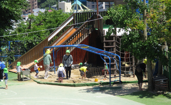 みやま幼稚園は、滑石の住宅地にあり、昔からある森を残した自然豊かな園です。